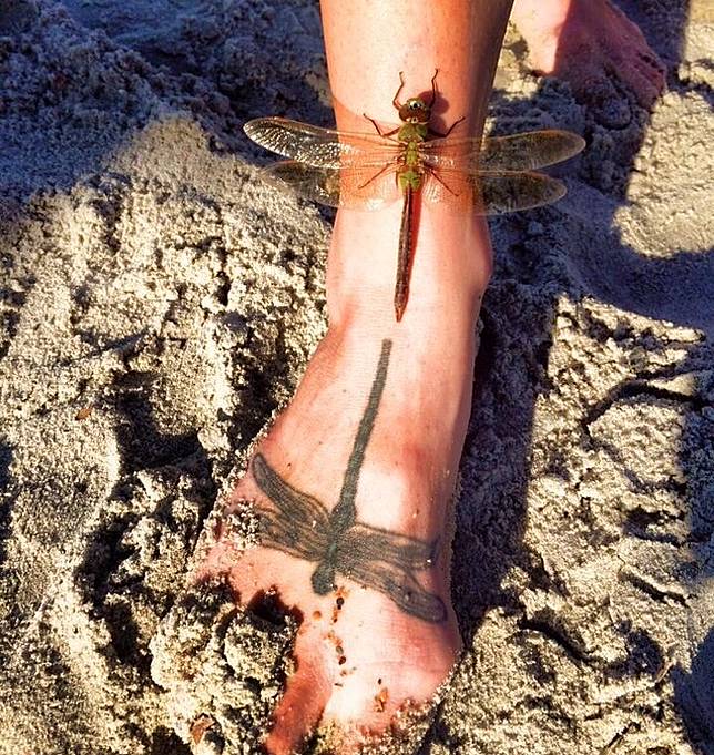 8. Capung Hinggap Di Kaki Ini Seolah Cermin Dari Tato di Bawahnya
